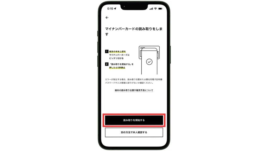 マイナンバーカードの読み取りに進みます↓
