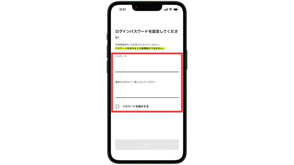 アプリを起動したらがログインボタンの上の「口座を開設する」をタップ。
