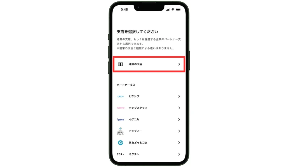 どれを選択しても機能による違いはありません。「通常の支店」から選択できる支店