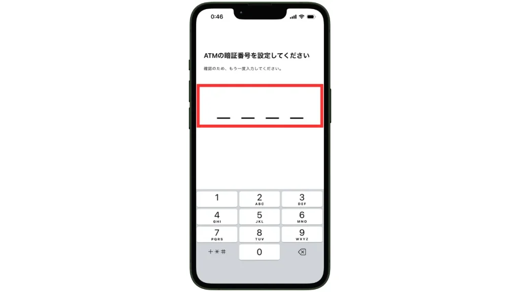 ATMで使う4桁の暗証番号を設定します。