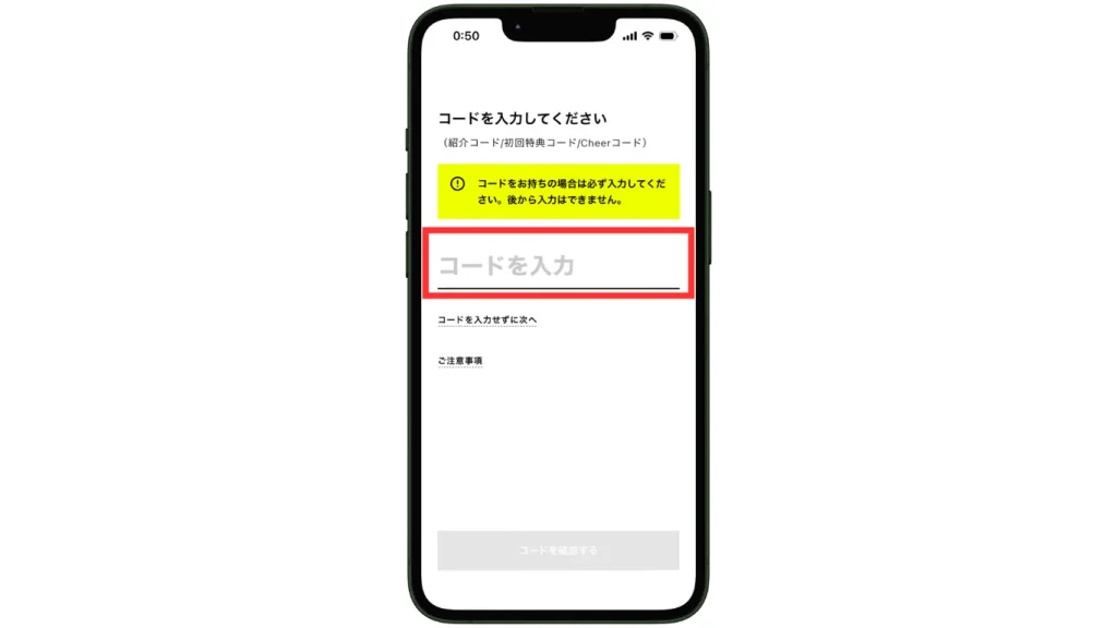 ※後から紹介コードを入力することはできません。