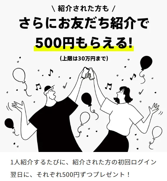 - 友達を紹介すると自分にも、友達にも500円