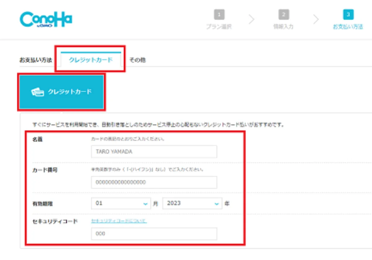 先ほどプランを選択した画面を