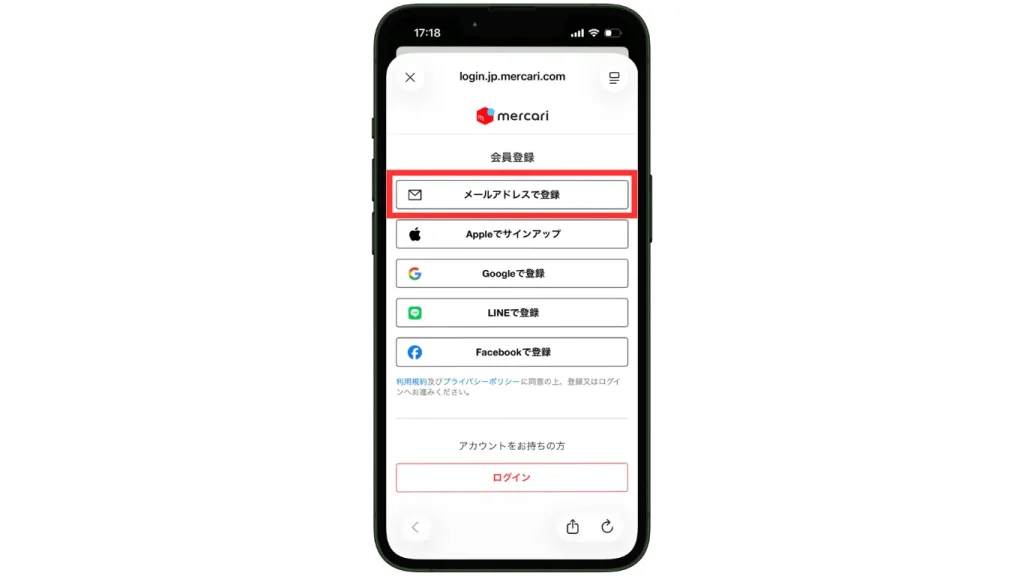 「メルカリをはじめる」をタップ。 - STEP.3会員登録